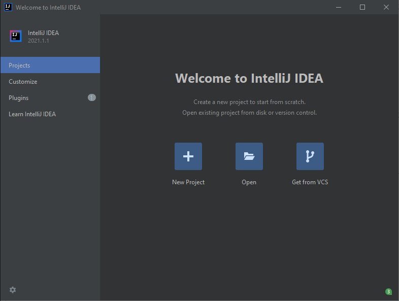 Once IntelliJ is downloaded and installed, click on the New Project button to get started with IntelliJ: